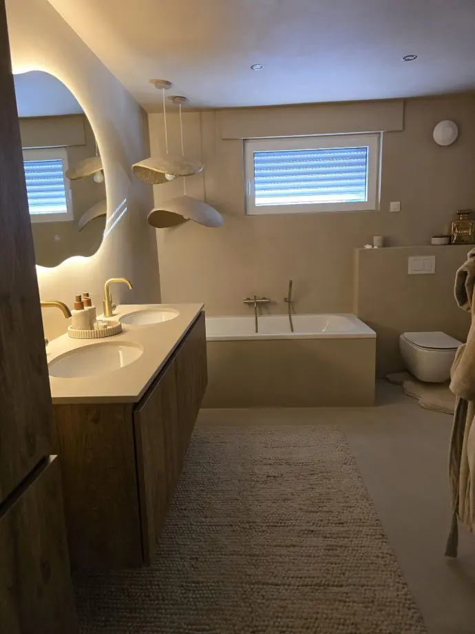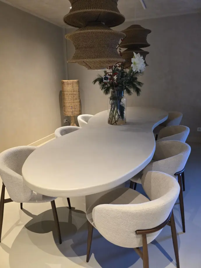 Het is belangrijk dat de plaats waar je elke dag bent er goed uit ziet. Wij helpen jouw dromen waar te maken met onze kwalitatieve producten. We kunnen het hele plaatje vernieuwen, zowel je binnen- en buitenmuren, als de vloer of plafond. Bij enige twijfel kunnen we je altijd helpen door professioneel advies aan te bieden. (Ruimte voorzien van microcement + tafel in microcement)
